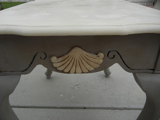 This table was so ugly, the owner of the thrift store just gave it to me! I promised her I would show a picture of the make over. Someone had painted the top a terrible gold color. I am showing the first picture after sanding all that gunk off.